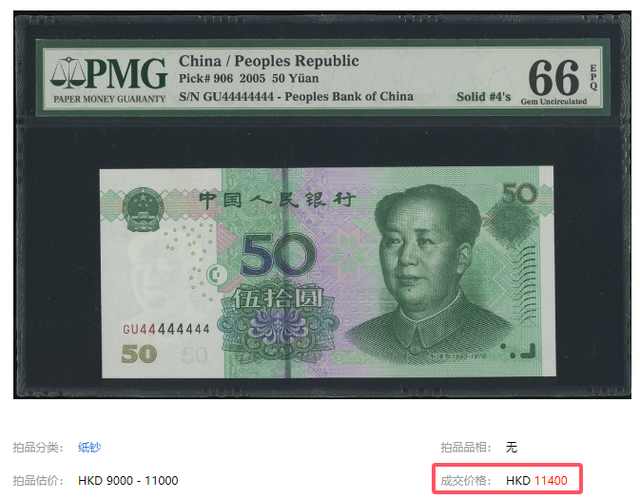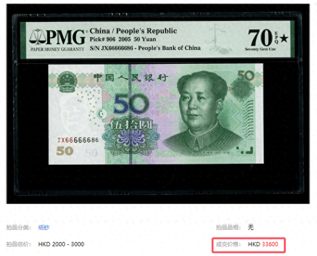 那么问题来了,一张面值仅50元的纸币,凭什么可以拍出超过600倍的高价?答案藏在两个关键字:品相与号码。